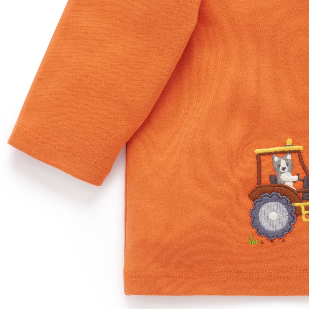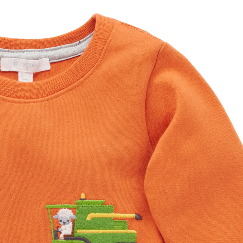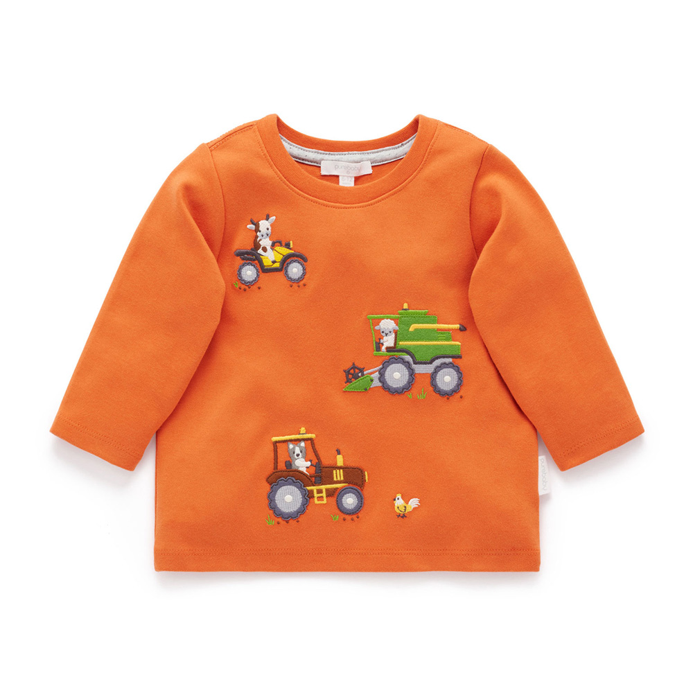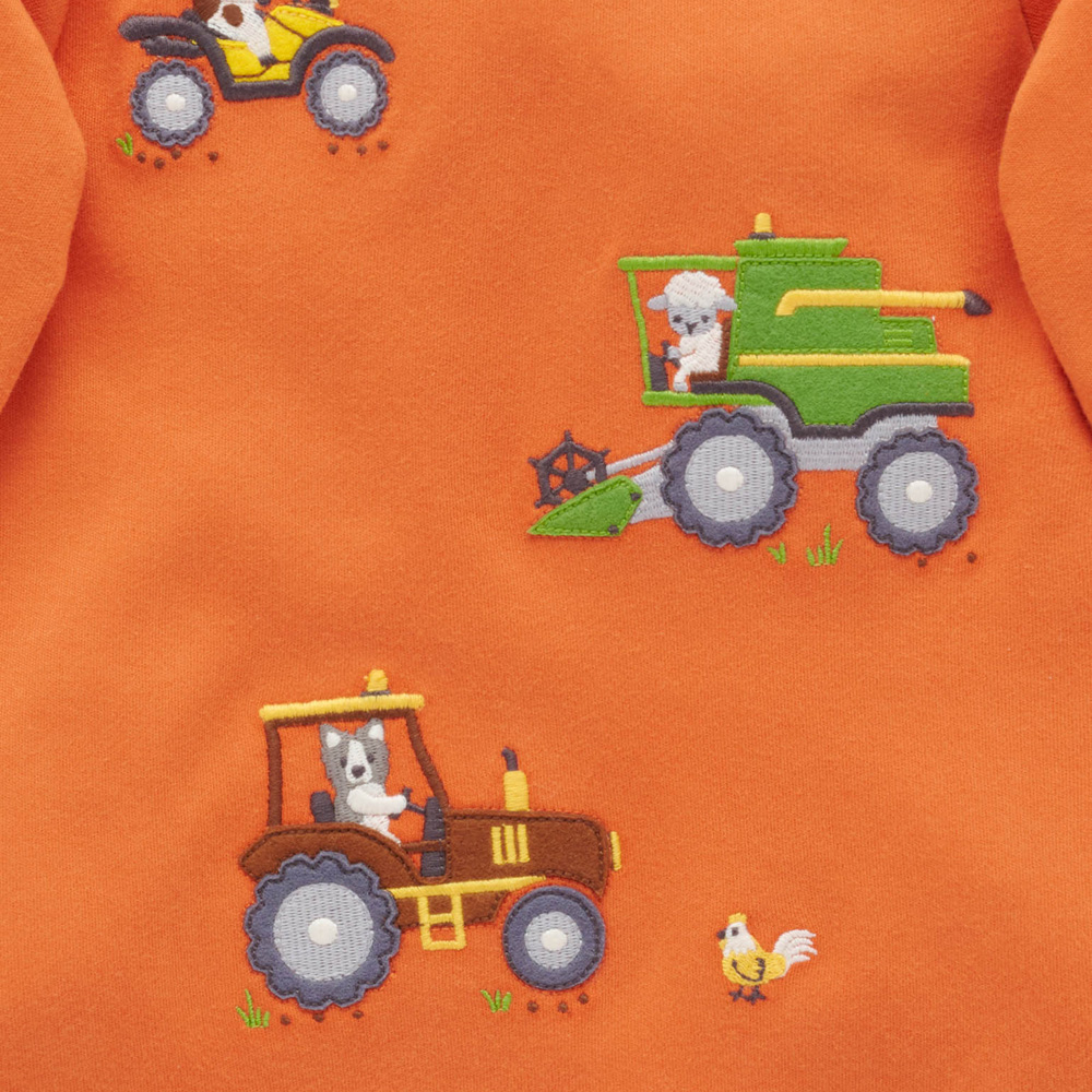 【產品描述】 ◆採用厚實有機棉製成,柔軟又保暖,安心材質 ◆羅紋領口彈性設計,方便穿脫 ◆胸前飾有農場工作貼布繡,活潑有趣 ◆寬鬆版型,穿著舒適好搭配