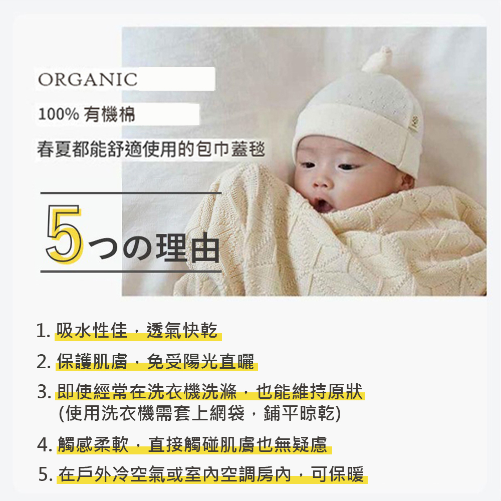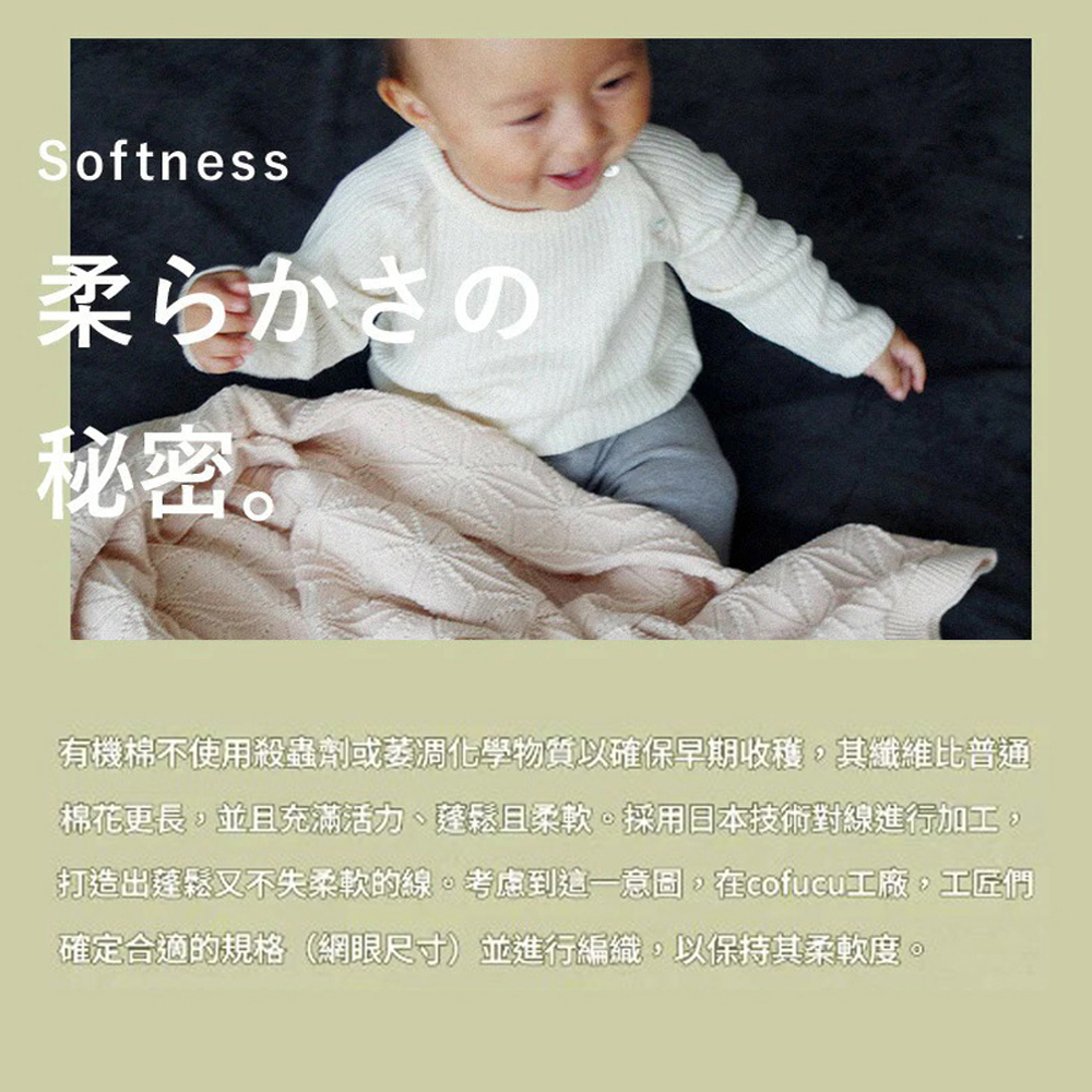 ◆採用 GOTS認證100% 有機棉,象徵吉祥的麻葉圖案編織而成,觸感柔軟透氣,呵護寶寶肌膚