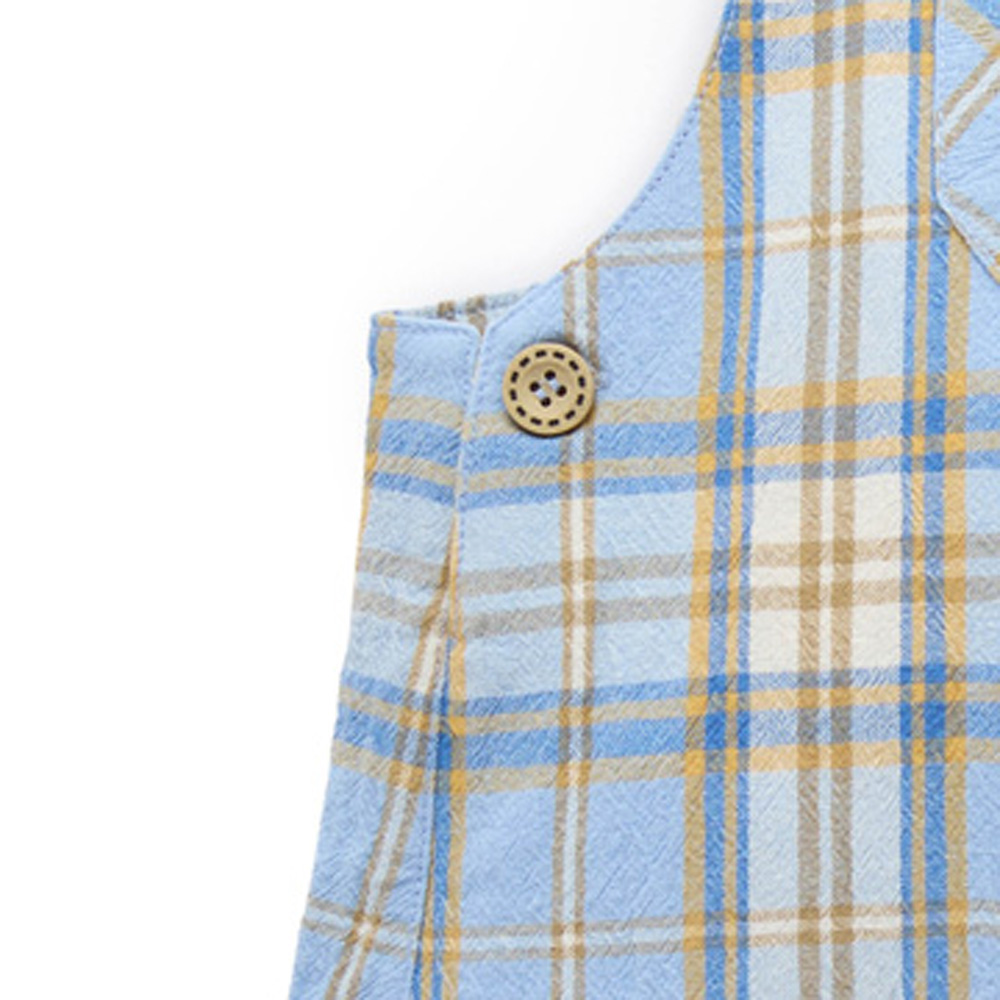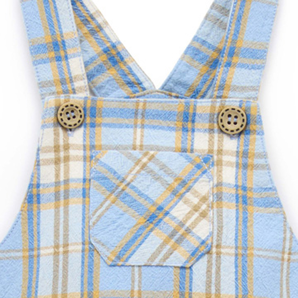 【產品描述】 ◆採用有機棉布製成,材質使用最安心 ◆柔軟舒適又好穿;呵護寶貝細緻肌膚 ◆木質外觀鈕扣,可調式交叉肩帶,前後小口袋 ◆寬鬆版型,可根據天氣變化內搭上衣,是完美的跨季風格單品 ◆全身柔和格紋,經典百搭