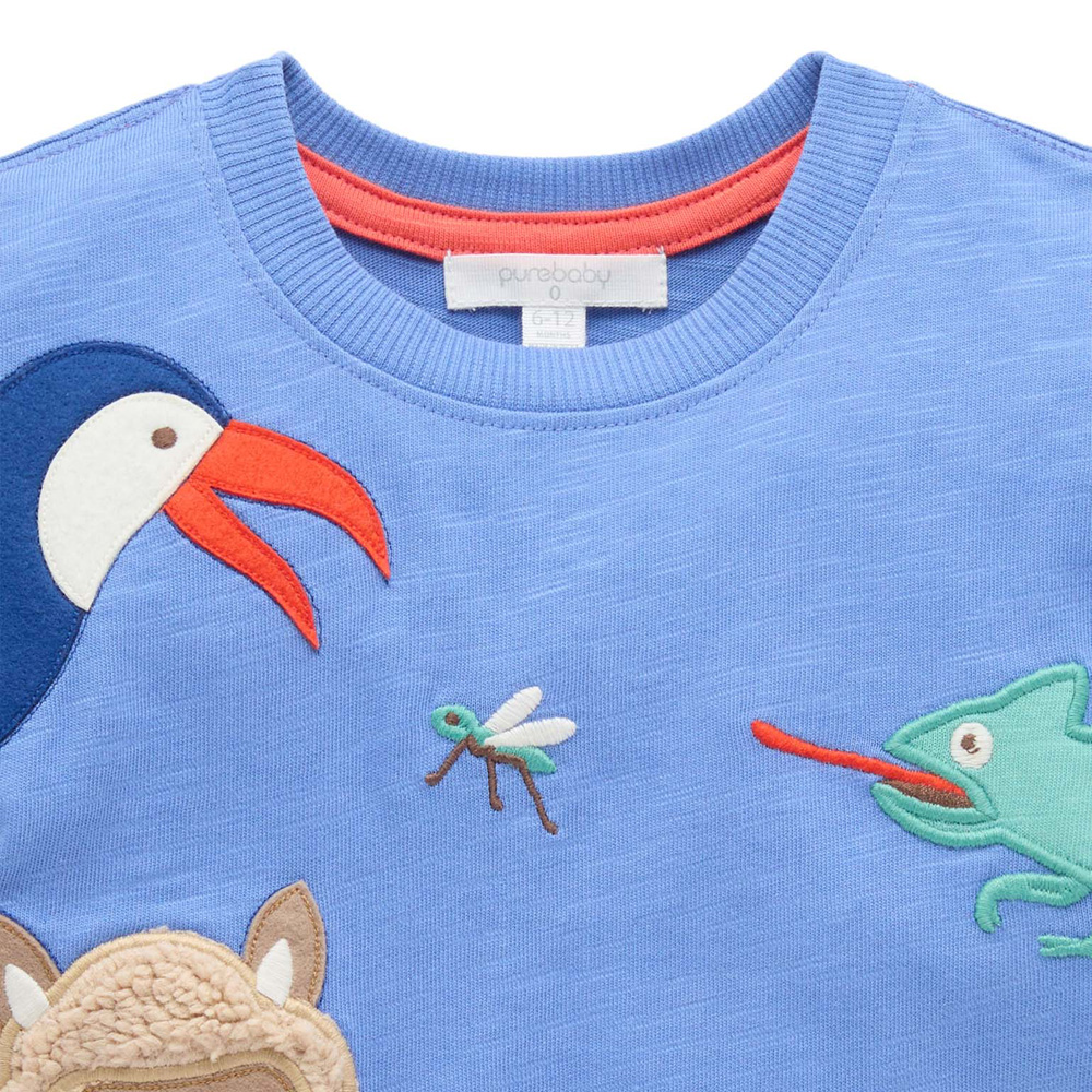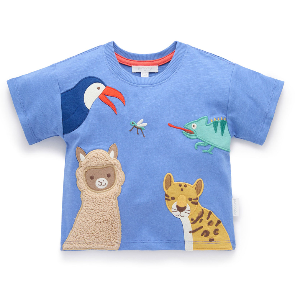 【產品描述】 ◆採用 100% 有機棉針織布料製成,安心材質,觸感柔軟親膚 ◆羅紋領口飾邊,寬鬆版型設計 ◆有大嘴鳥、毛茸茸的羊駝、變色龍、美洲豹 等動物貼布繡,活潑有趣