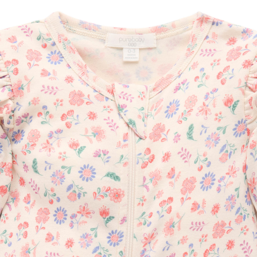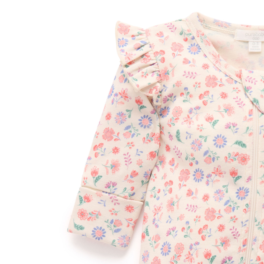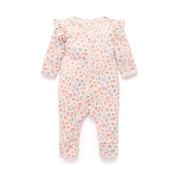 ◆肩部荷葉邊,全身柔和花卉印花
