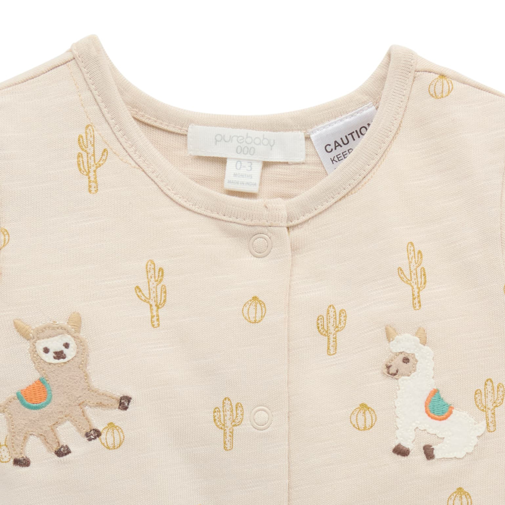【產品描述】 ◆採用有機棉, 材質使用最安心 ◆舒適柔軟透氣, 呵護寶寶細緻肌膚 ◆前開和腿部按扣式,方便穿著 ◆可愛羊駝貼布繡及仙人掌印花