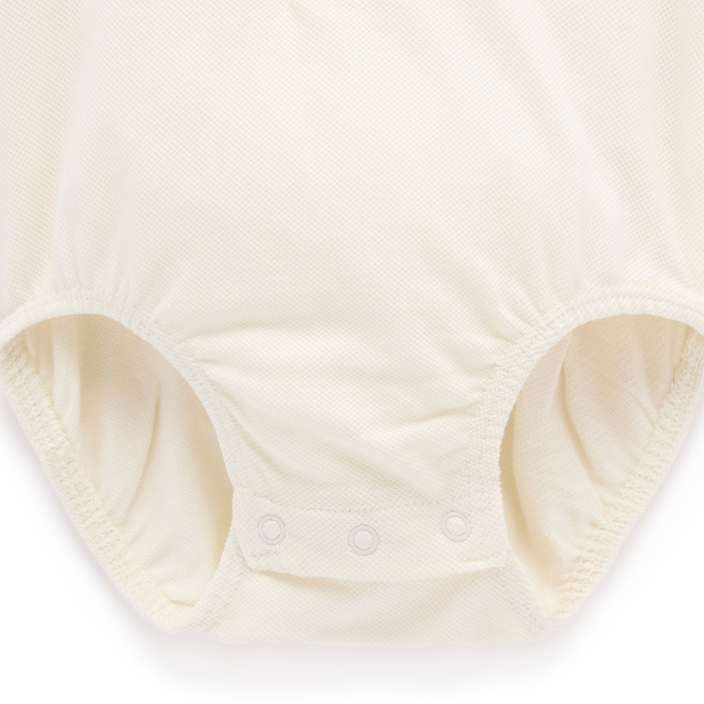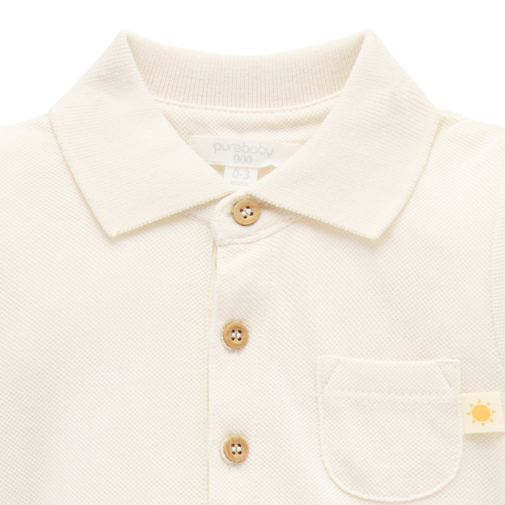 【產品描述】 ◆採用有機棉,安心面料 ◆舒適柔軟透氣,呵護寶寶細緻肌膚 ◆POLO衫式設計,羅紋領子及袖口,胸前小口袋,仿木羈扣 ◆底部有按扣,方便穿脫 ◆腿部彈性縮口,穿著舒適