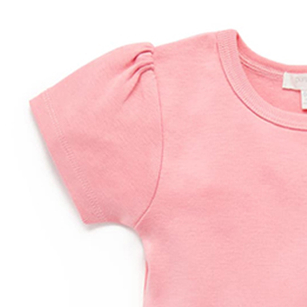 【產品描述】 ◆採用柔軟的100%有機棉,安心材質 ◆特色抓皺袖,基本款素T,透氣舒適 ◆簡單素雅,可搭配任何下身。輕鬆打造夏日甜美風