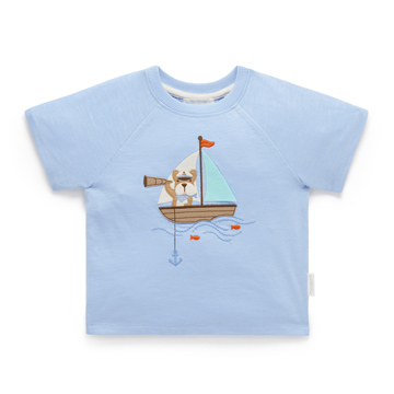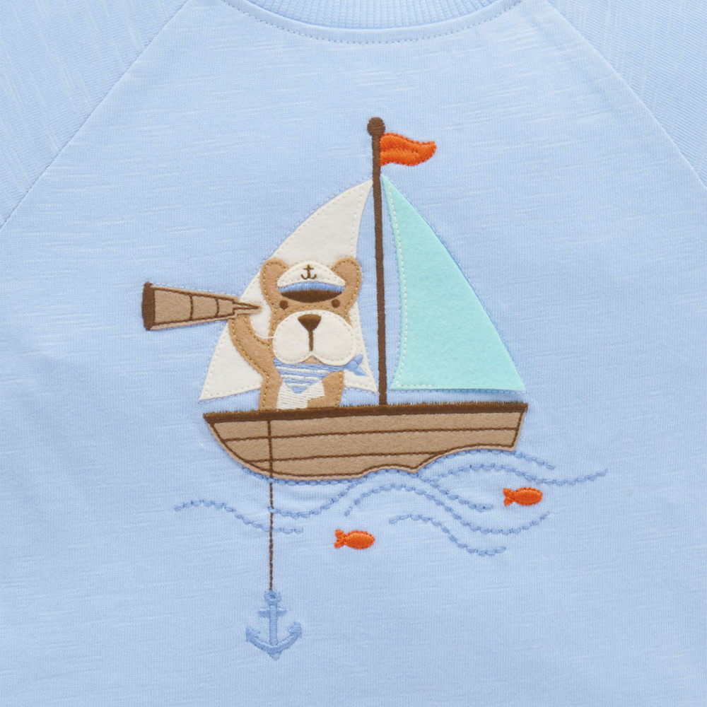 【產品描述】 ◆採用有機棉安心材質,為肌膚帶來柔軟溫和的觸感。 ◆彈性羅紋領口飾邊,寬鬆版型設計 ◆胸前可愛水手貼布繡