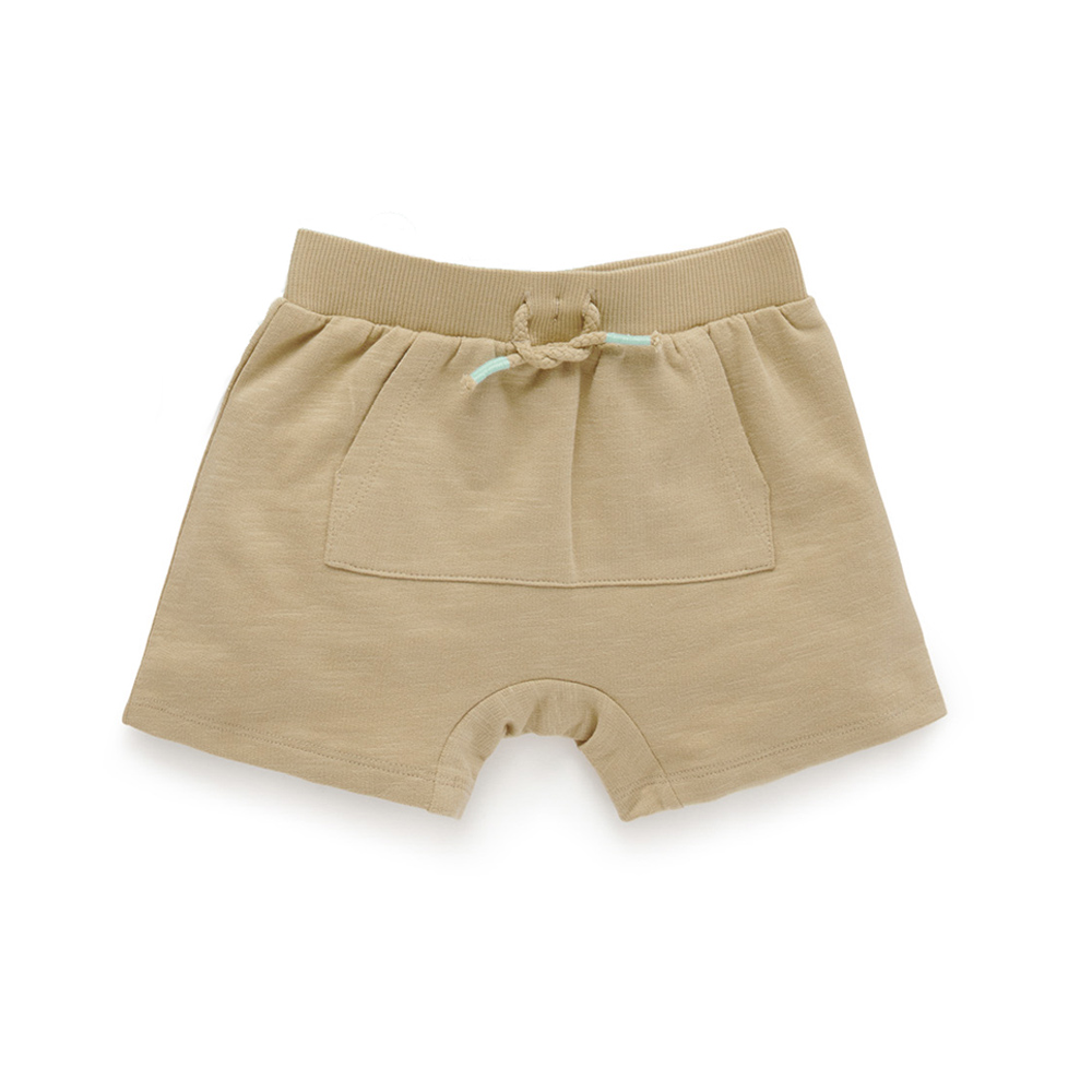 【產品描述】 ◆採用有機棉,安心材質 ◆舒適柔軟透氣又好穿 ◆彈性腰帶綁帶設計,袋鼠口袋落襠短褲 ◆大地色系,非常適合戶外活動穿著