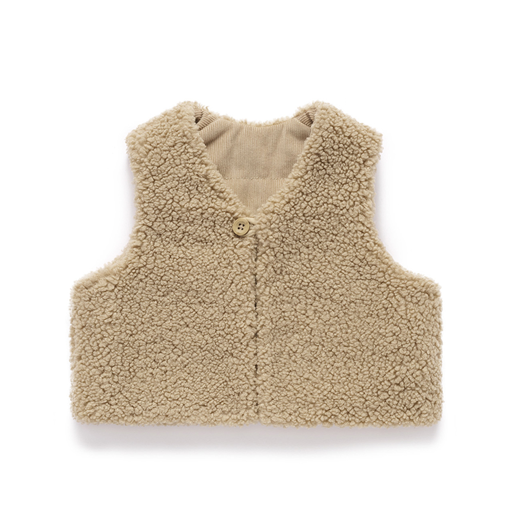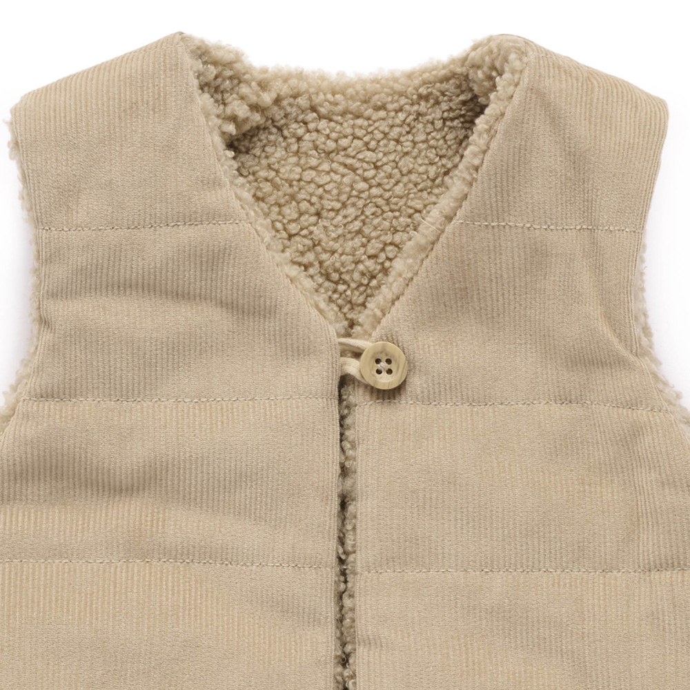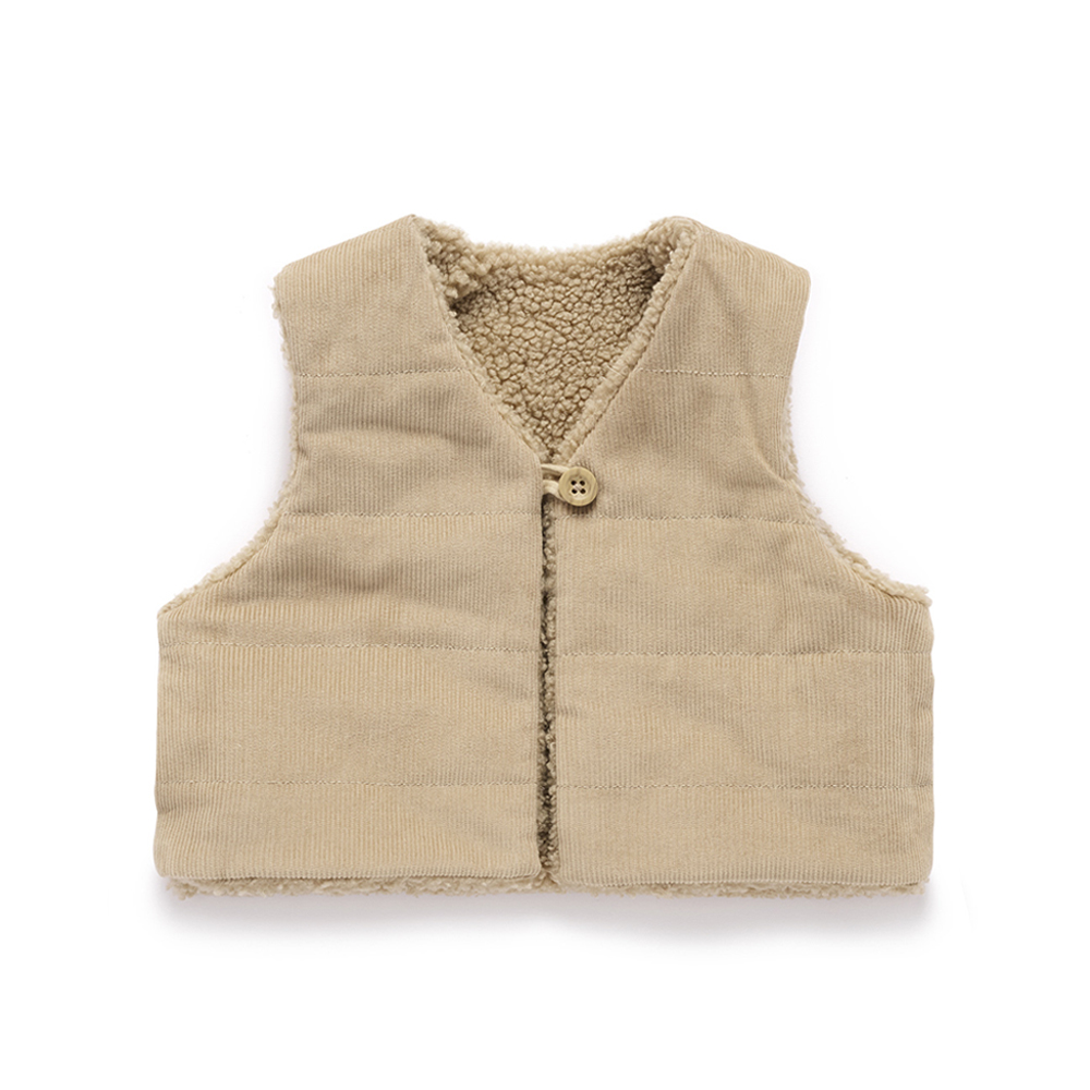 【產品描述】 ◆採用有機棉及再生聚脂纖維,安心材質 ◆ V領設計,一面採用柔軟仿羊毛, 一面採用同色系燈芯絨 ◆剪裁俐落,胸前單顆木質鈕扣可固定 ◆秋冬必買單品,時尚保暖好搭配