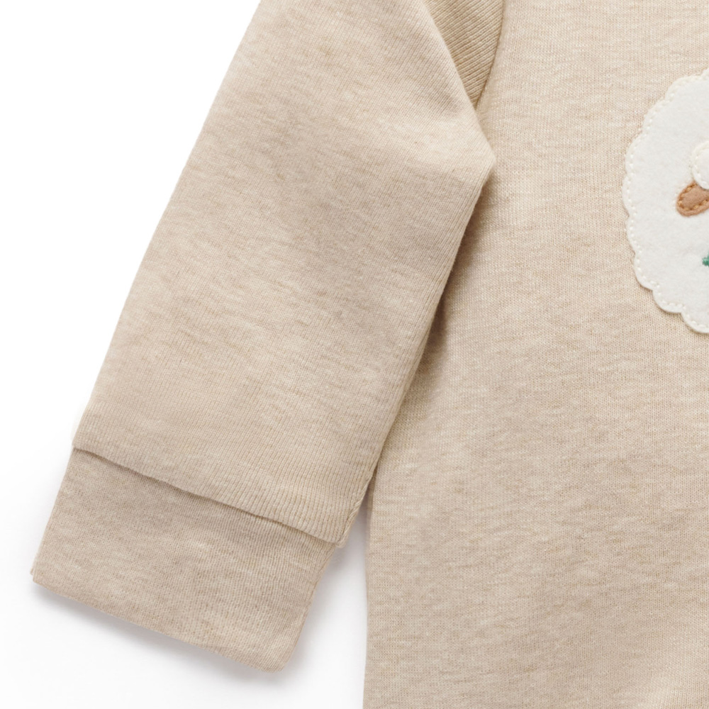【產品描述】 ◆採用有機棉安心面料 ◆舒適柔軟透氣又好穿;呵護寶寶細緻肌膚 ◆褲檔處有按扣,方便穿著 ◆腿部鬆緊飾邊,穿著舒適 ◆胸前可愛綿羊貼布繡 ◆一年四季皆可搭的必備單品