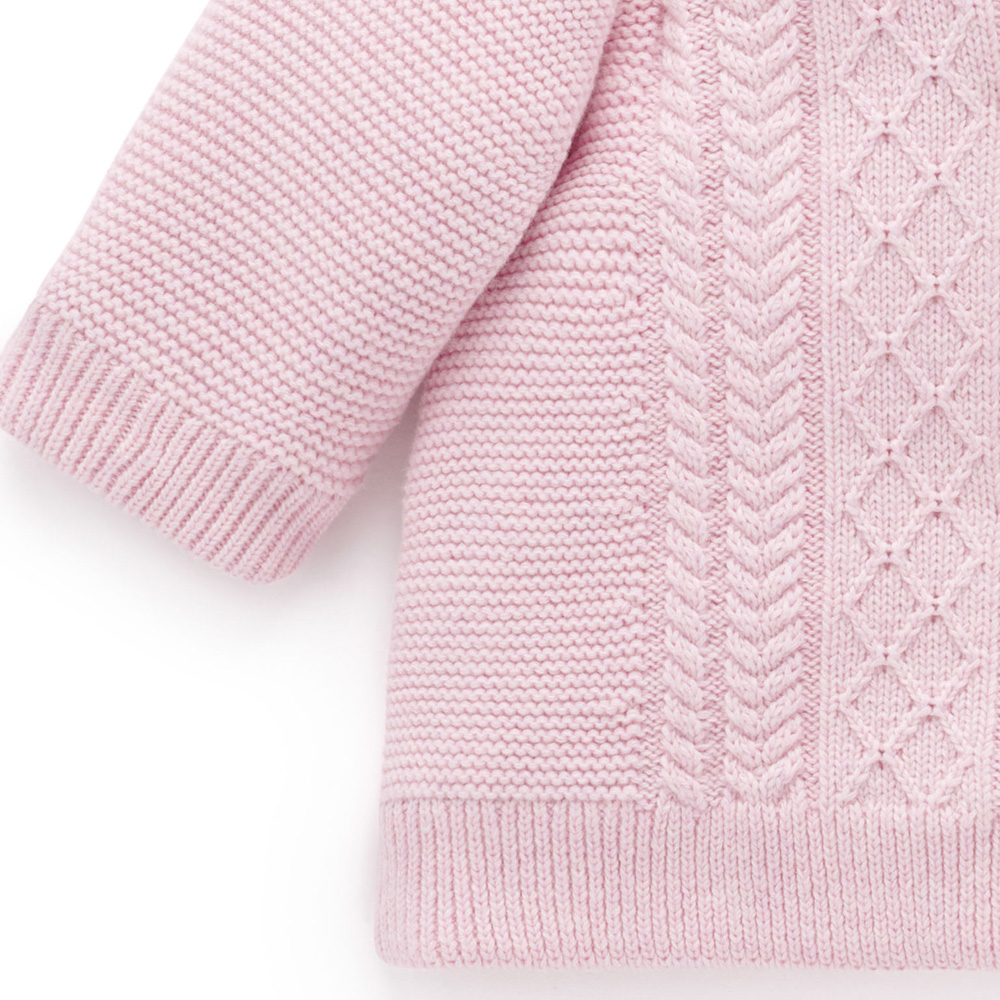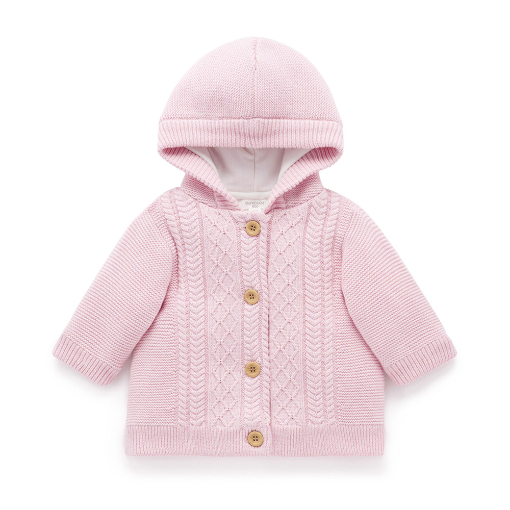 【產品描述】 ◆採用有機棉混羊毛製成,材質保暖厚實 ◆胸前的木質鈕釦方便穿衣,連帽設計舒適保暖 ◆粗絞花針織,大地色系,質感好搭配