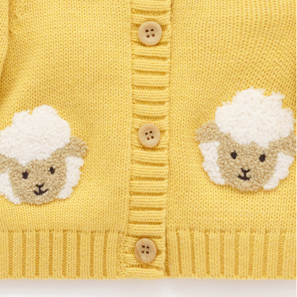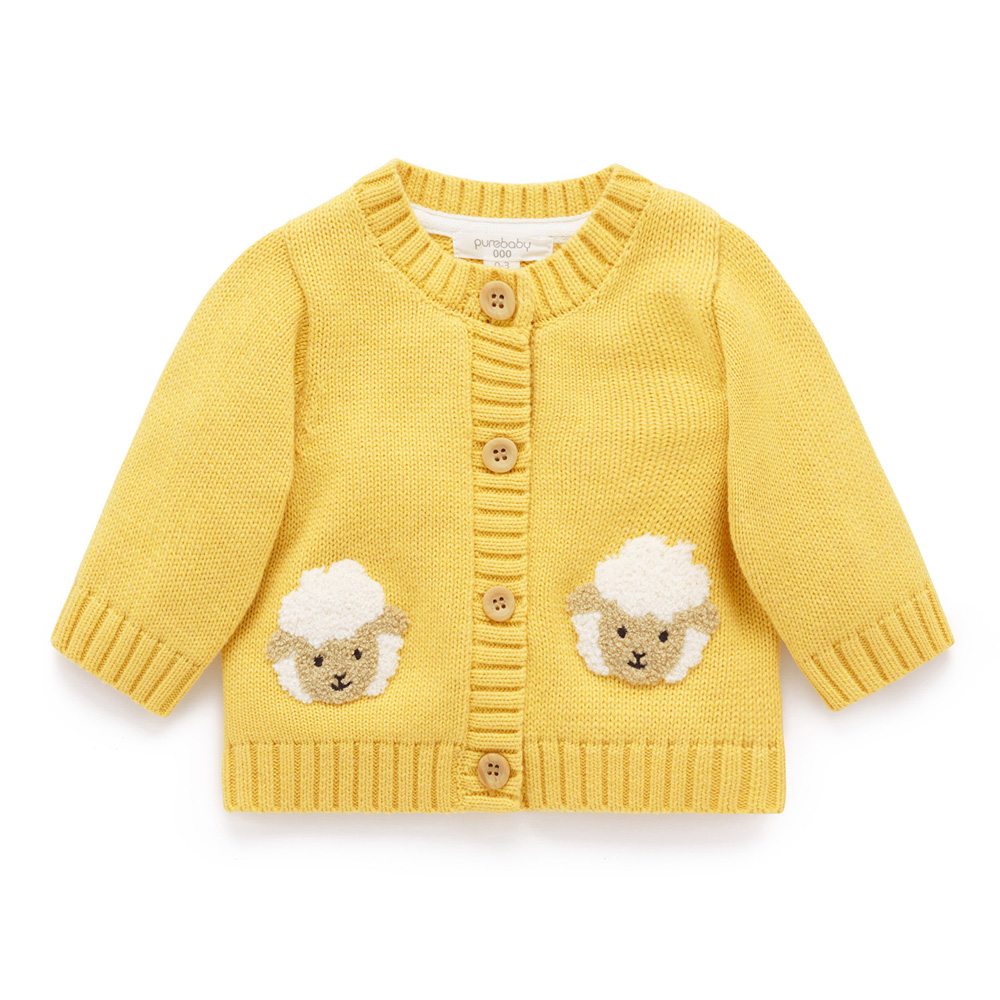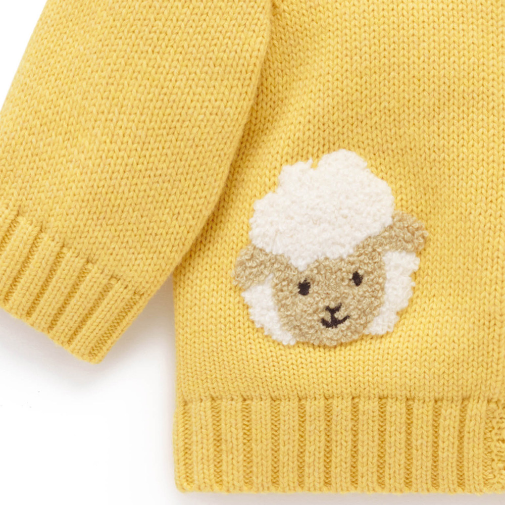 【產品描述】 ◆採用有機棉和羊毛混紡,觸感柔軟又保暖 ◆兩側蓬鬆的綿羊刺繡,活潑可愛,木質鈕扣方便穿脫 ◆粗針羅紋飾邊,厚薄適中且保暖,可疊搭任何服裝