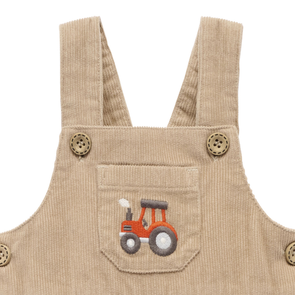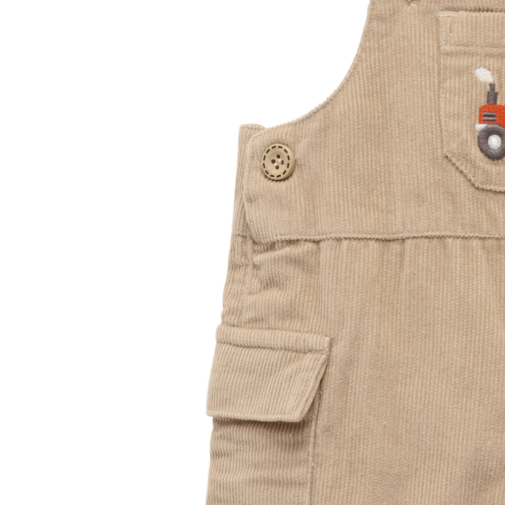 【產品描述】 ◆採用 100% 有機棉燈芯絨,安心材質 ◆可調式肩帶,腿部有卡扣,方便穿脫 ◆胸前有趣的拖拉機刺繡小口袋,並有腿部兩側大口袋, 可內搭長T襯衫或連身衣,造型休閒可愛