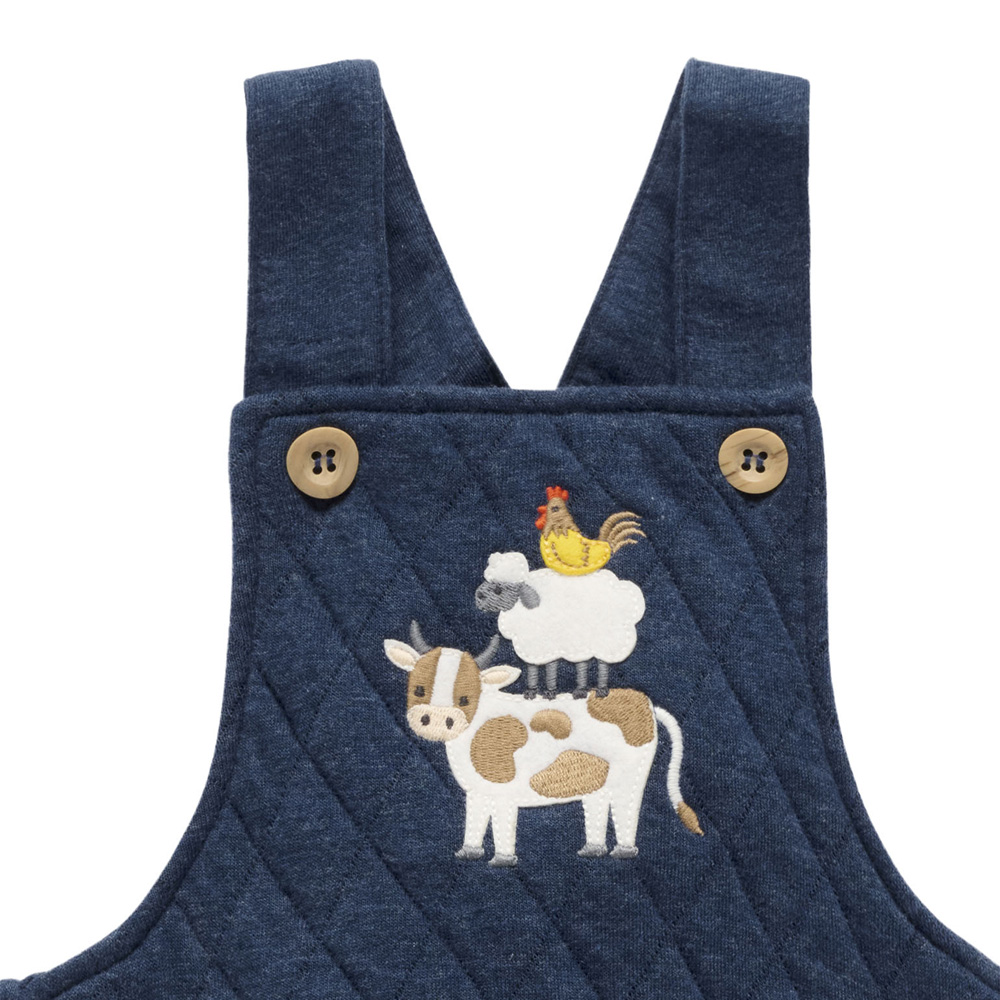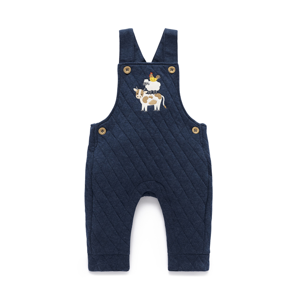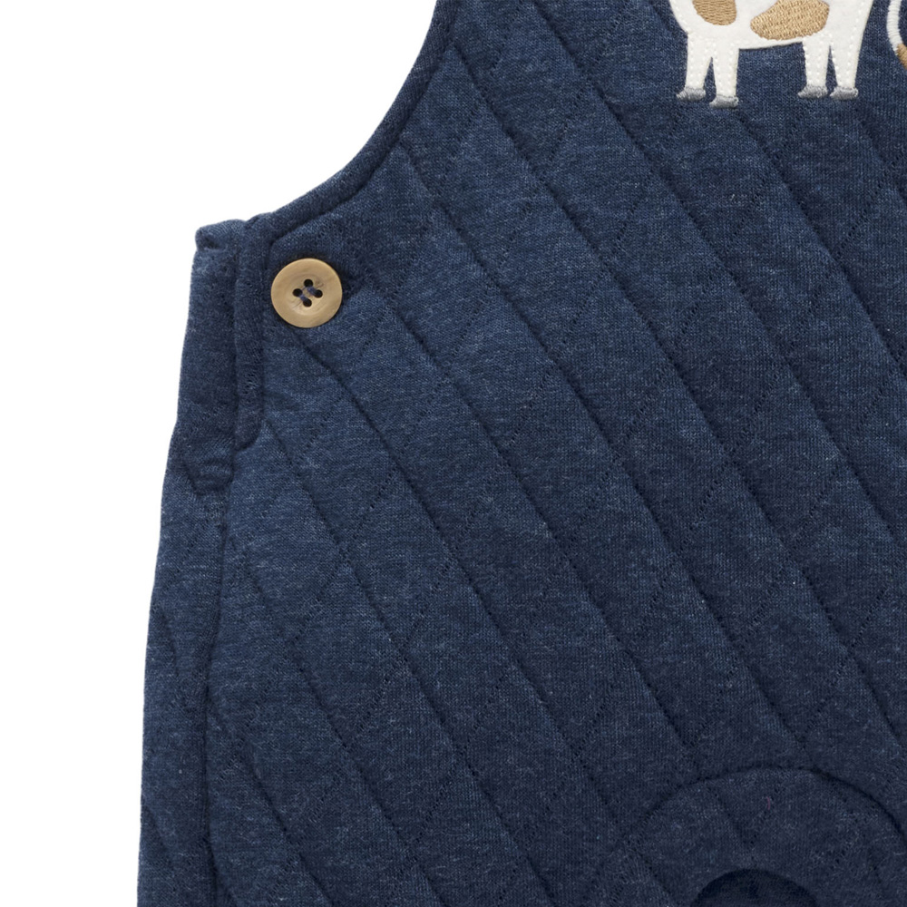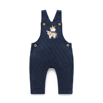 【產品描述】 ◆採用有機棉安心面料,材質柔軟舒適又保暖 ◆菱格壓紋薄鋪棉,保暖度佳 ◆可調式肩帶,腿上按扣方便穿脫 ◆胸前飾有農場動物貼布繡,精緻可愛