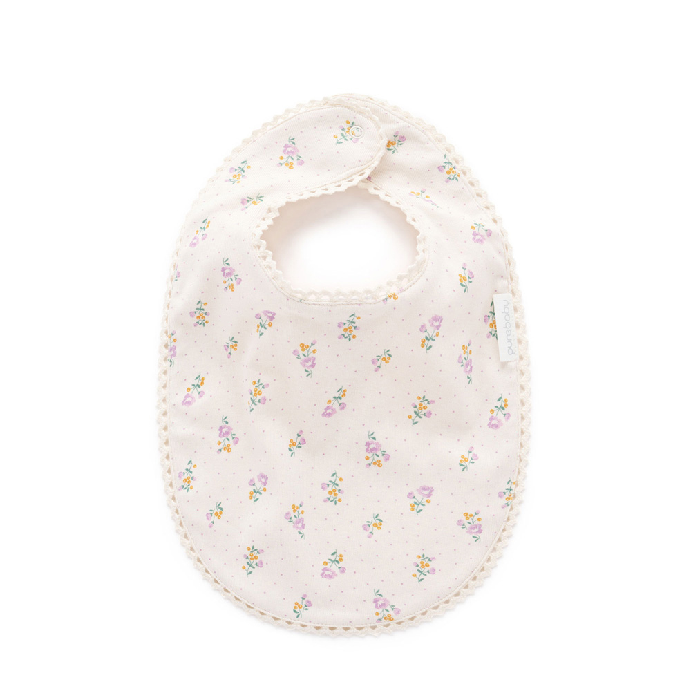 【產品描述】 ◆採用有機棉,安心材質 ◆舒適柔軟透氣;呵護寶寶細緻肌膚 ◆可調式按扣,毛巾布背襯,吸水力佳 ◆長度較長,可增加覆蓋範圍 ◆鋸齒形滾邊裝飾,甜美碎花印花