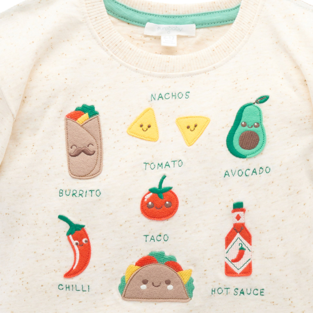 【產品描述】 ◆採用100%有機棉,安心材質 ◆趣味十足的墨西哥捲餅、玉米捲等貼布繡上衣 ◆側口袋和低襠設計的短褲,舒適有彈性 ◆超值套裝搭配,輕鬆打造夏日休閒風格