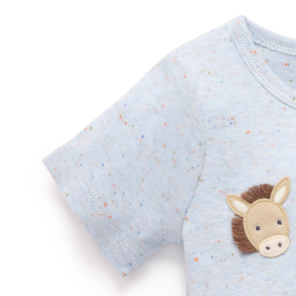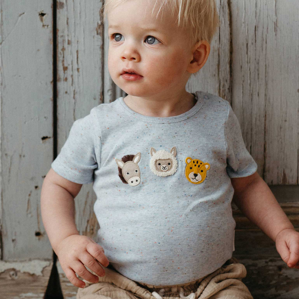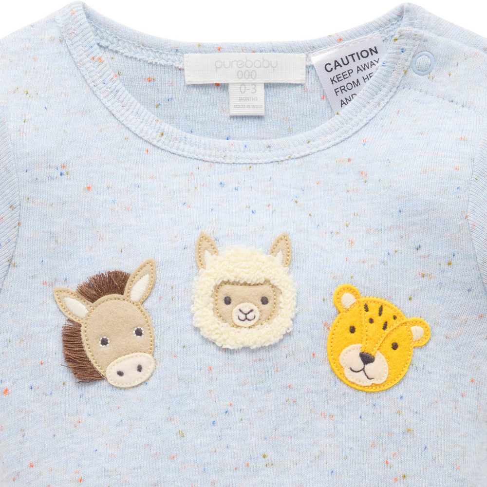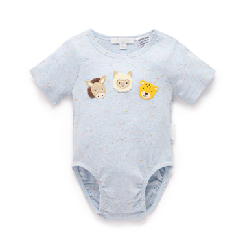 【產品描述】 ◆採用有機棉,安心面料 ◆舒適柔軟透氣有彈性,呵護寶寶細緻肌膚 ◆腿部和肩部有按扣,方便穿脫 ◆胸前立體動物貼花