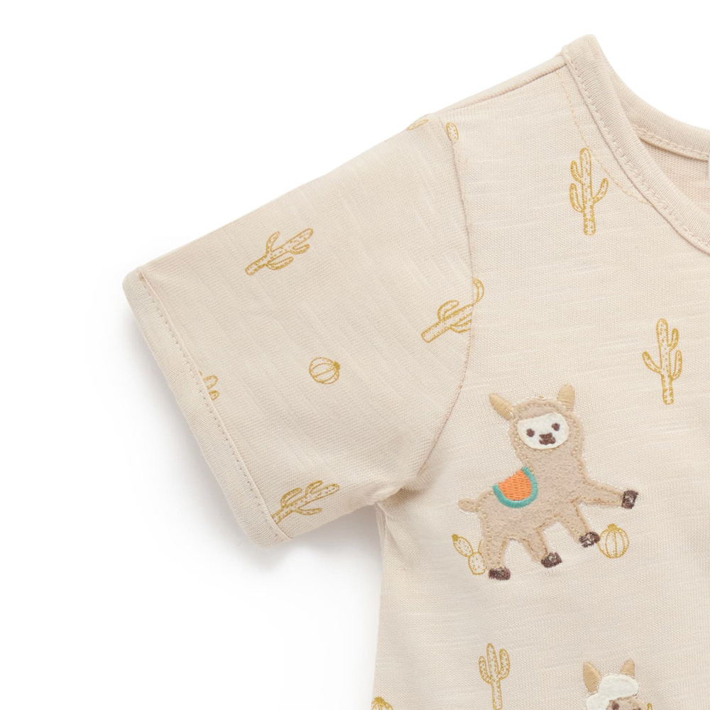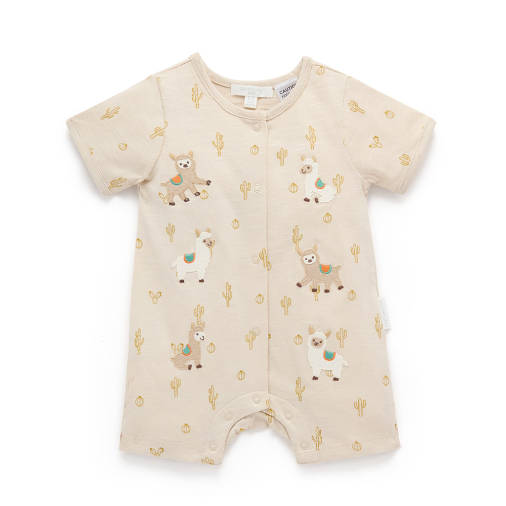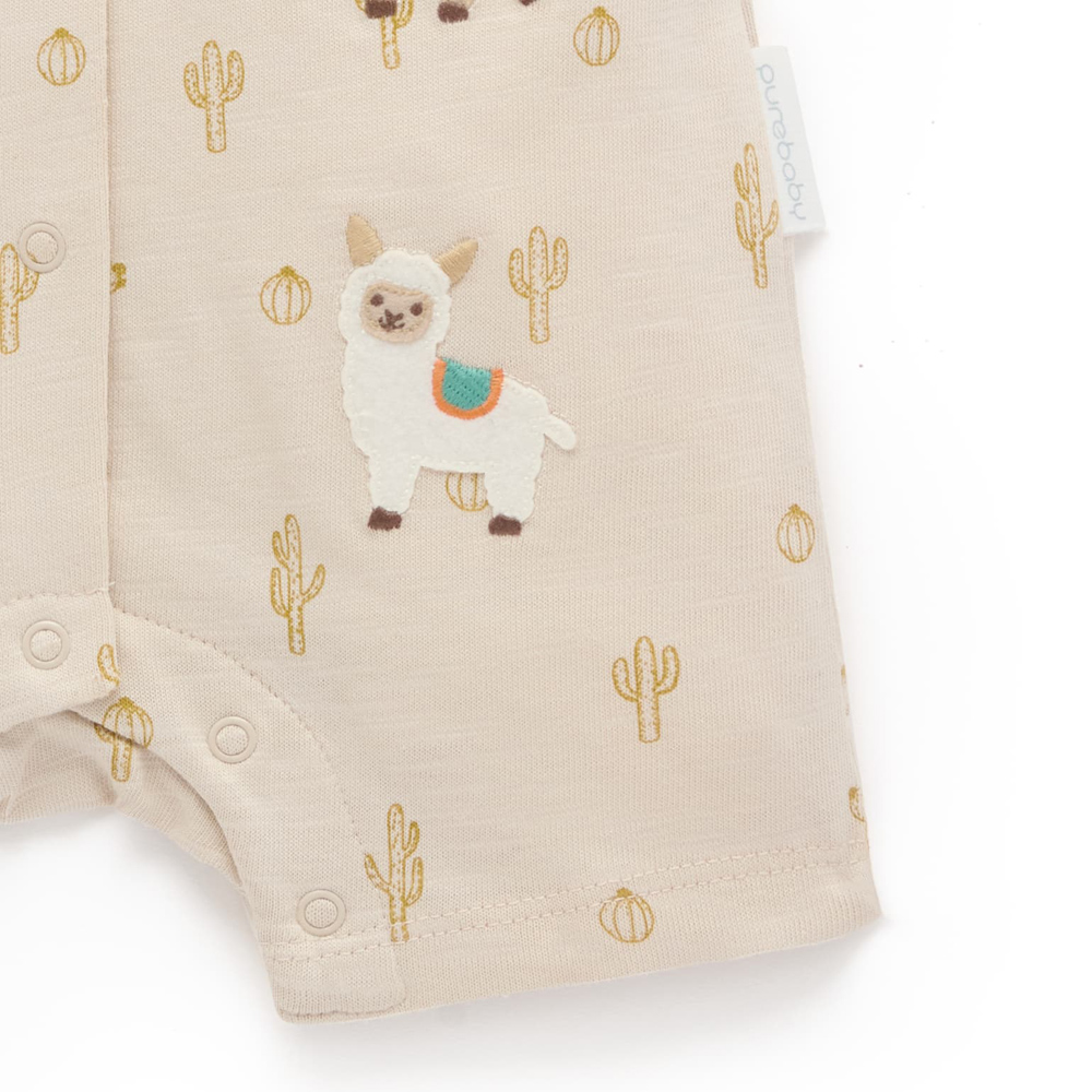 【產品描述】 ◆採用有機棉, 材質使用最安心 ◆舒適柔軟透氣, 呵護寶寶細緻肌膚 ◆前開和腿部按扣式,方便穿著 ◆可愛羊駝貼布繡及仙人掌印花