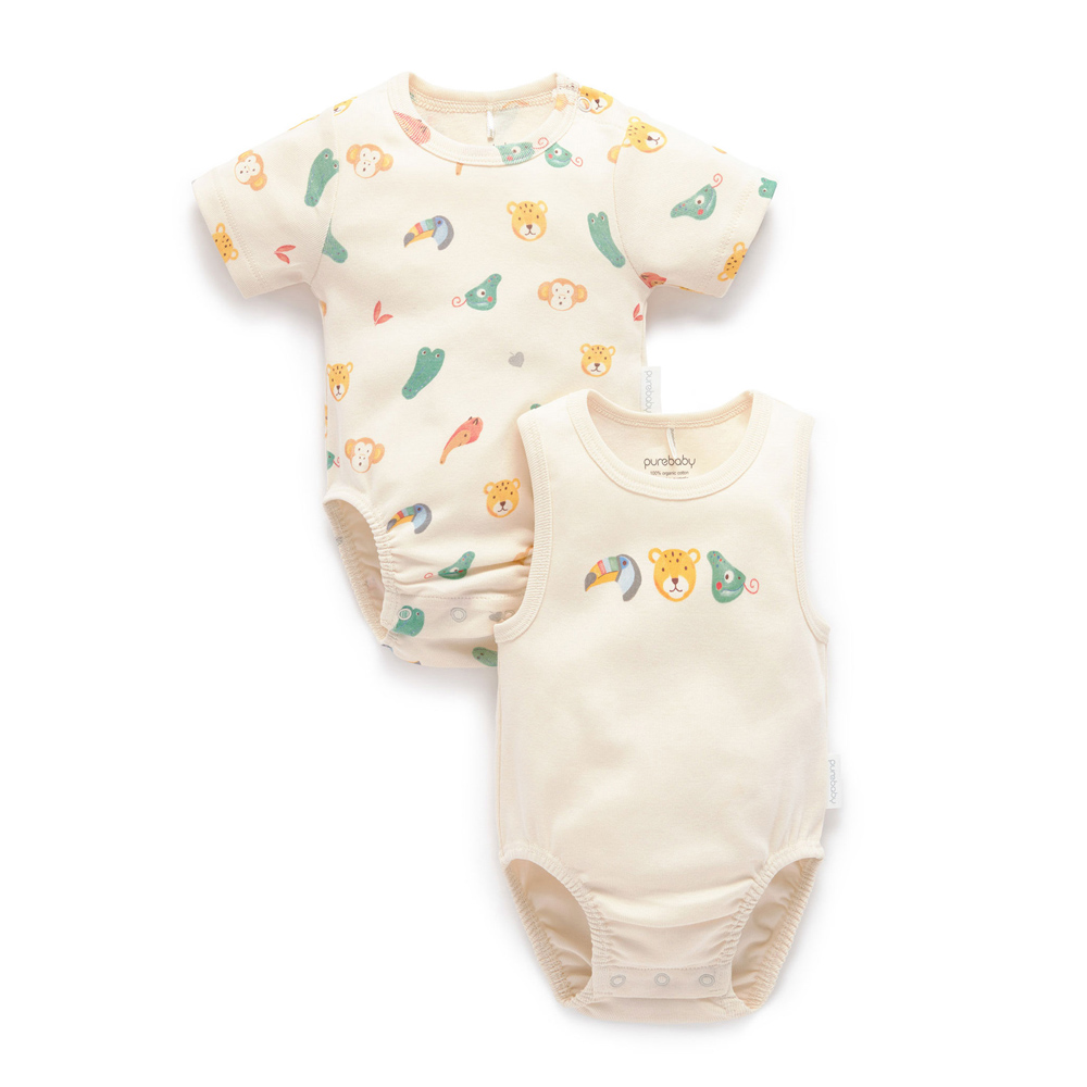 【產品描述】 ◆採用柔軟的100%有機棉,安心面料 ◆羅紋布料,舒適柔軟透氣,呵護寶寶細緻肌膚 ◆夏季必備單品,腿部彈性袖口及按扣設計, 穿脫方便 ◆超值包屁衣2件組,一件短袖,一件無袖,實穿好搭配